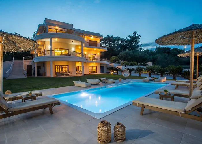 Guests can enjoy a seaside pool view from a terrace at the 4-bedroom Luxury Villa Amaltheia Rhodes Koskinou, 6 km from Diagoras Stadium. Guests can enjoy table tennis at this 4-bathroom villa, located within a 10-minute drive of the Faliraki Water Park.